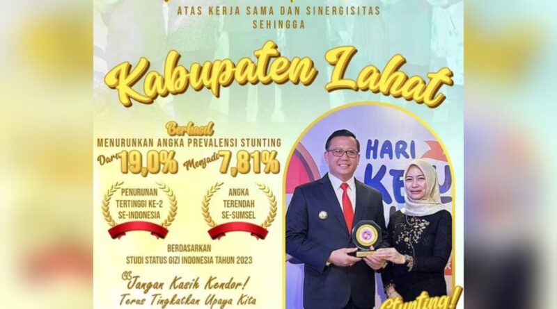 “Alhamdullillah, Kabupaten Lahat mendapatkan penghargaan Penurunan Prevalensi stunting se-Indonesia dalam momen Peringatan Hari Keluarga Nasional ke 31 tahun 2024,” ujar Farid.