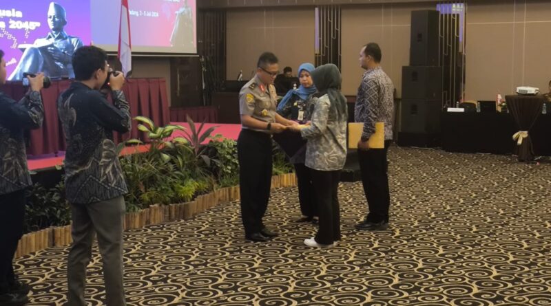 Brigjen Pol. Trio Santoso juga melepaskan tanda peserta dan menyerahkan sertifikat kepada Vella Gusti R mewakili 100 peserta Dialog Kebangsaan.