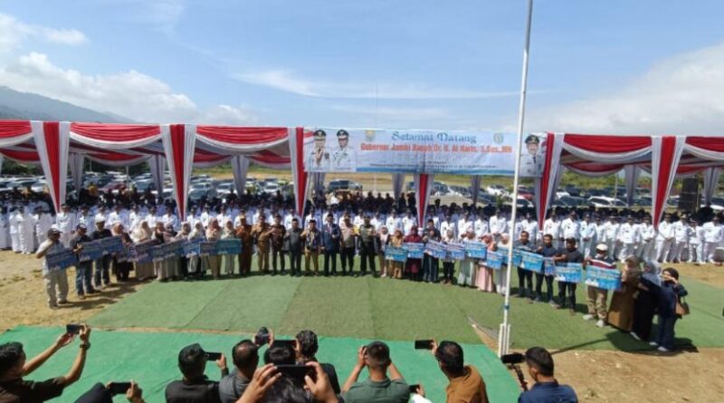 Foto: Pj. Bupati Kerinci, Gubernur Jambi serta jajaran foto bersama dengan 271 Kades se-Kabupaten Kerinci yang telah dikukuhkan (Foto: IST)
