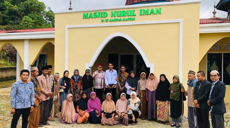 Foto: Kepala KUA, Penyuluh Agama, Korlap KB Kec. Hiliran Gumanti serta warga lansia Jorong Sianggai-anggai berfoto bersama di depan Masjid Nurul Iman usai pembinaan (Foto: IST)