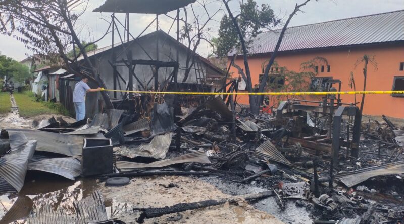 Foto: Personel Polresta Palangka Raya memasang police line di lokasi kebakaran di (Foto: IST)