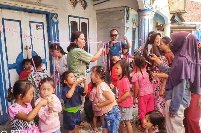 Foto: Anak-anak Kelurahan Pasar Bawah saat mengikuti perlombaan makan kerupuk gantung di acara Agustusan (Foto: IST)