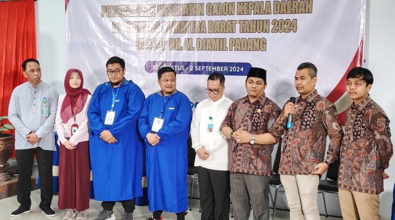 Padang, MZK News – Calon Bupati dan Wakil Bupati Tanah Datar, Richi Aprian-Donny Karsont mengikuti pemeriksaan kesehatan di RSUP M Djamil Padang. Ada 20 metode pemeriksaan kesehatan dan penyalahgunaan narkotika yang akan diikuti oleh calon kepala daerah dalam pemilihan serentak nasional 2024 ini.