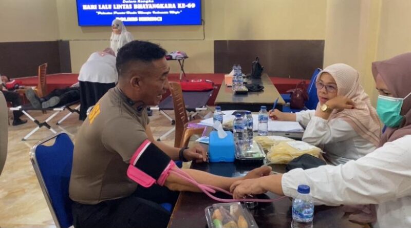 Foto: Satlantas Polres Kerinci melakukan bakti sosial dan donor darah dalam memperingati Hari Lalu Lintas Bhayangkara yang ke-69 (Foto: IST)