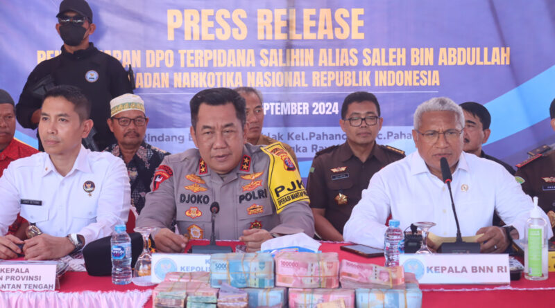 Apresiasi tersebut, disampaikan langsung Kapolda Kalteng saat menghadiri konferensi pers ‘Penangkapan DPO terpidana Salihin alias Saleh bin Abdullah oleh BNN RI’, bertempat di Jl. Rindang Banua, GG Akhlak, Kel. Pahandut, Kota Palangka Raya, Selasa (10/9/2024).