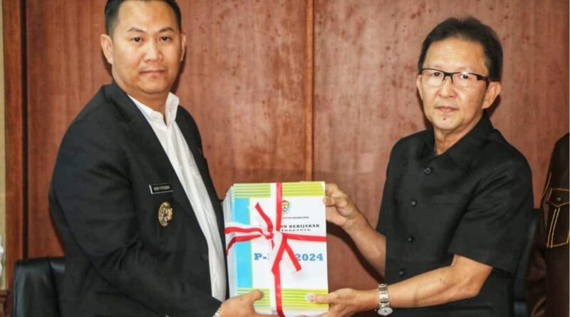 Foto: Pj. Bupati Muara Enim, Henky Putrawan serahkan Dokumen Rancangan Perubahan KUA dan PPAS Tahun 2024 kepada Ketua DPRD Kab. Muara Enim, Liono Basuki (Foto: IST)