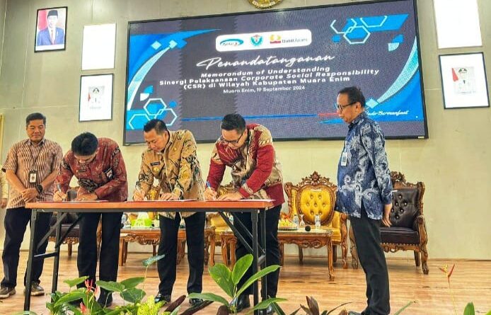Muara Enim, MZK News – PT Bukit Asam Tbk (PTBA) bersama Pemerintah Kabupaten Muara Enim dan Badan Pengawasan Keuangan dan Pembangunan (BPKP) Provinsi Sumatera Selatan resmi menandatangani Nota Kesepahaman (Memorandum of Understanding/MoU) Sinergi Pelaksanaan Corporate Social Responsibility (CSR) di wilayah Kabupaten Muara Enim.