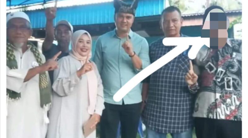 Foto: Foto Oknum ASN berpangkat Kabag yang diduga tak netral dengan memamerkan jari telunjuk seolah melambangkan nomor urut paslon (Foto: IST)
