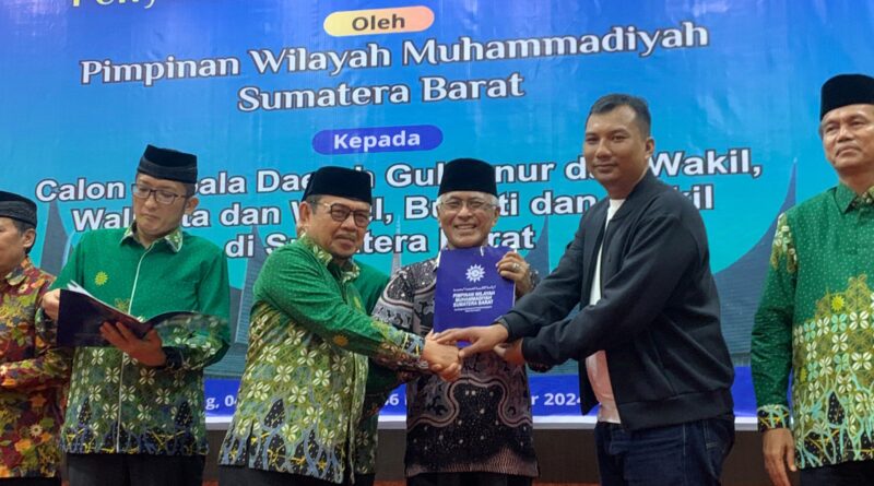 Padang, MZK News – Pimpinan Wilayah Muhammadiyah Sumatra Barat baru saja menyerahkan surat rekomendasi kepada Calon Bupati Kabupaten Agam, Guspardi Gaus, beserta Calon Wakil Bupati dalam acara yang berlangsung di Convention Hall Prof. Dr. Ahmad Syafii Maarif, M.M, Universitas Muhammadiyah Padang.