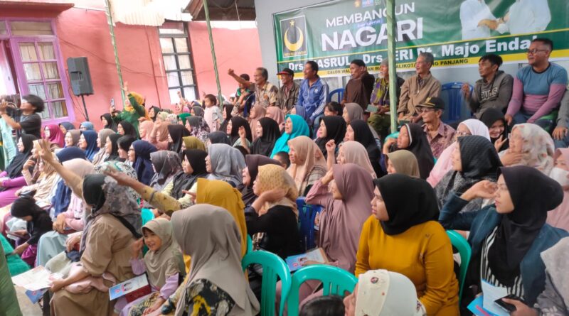 Padang Panjang, MZK News – Ratusan massa calon walikota dan Wakil Walikota Padang Panjang nomor urut 2, Drs. Nasrul-Drs. Eri Datuak Majo Endah hadiri sosialisasi. Sosialisasi pasangan yang akrab disapa “Nagari” ini dilaksanakan di RT 18 Kelurahan Balai-Balai kecamatan Padang Panjang Barat, Selasa (15/10).