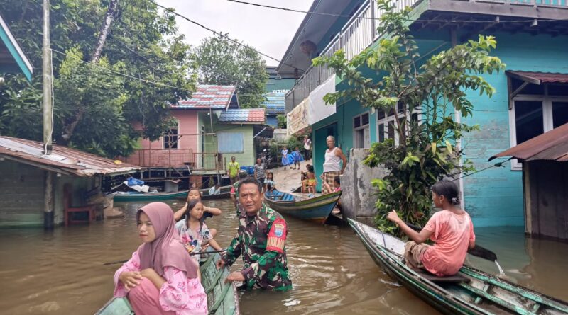 Danramil Kecamatan Permata Intan Berjibaku Bantu Warga Terdampak Banjir