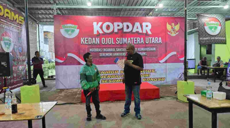 Medan, MZK News – Konten kreator Kota Medan, Ibrahim Umar atau yang lebih dikenal dengan nama “Ketua Limpol” memeriahkan hari jadi ke-6 Gabungan Ojek Roda Dua Medan Sekitarnya (Godams), Sabtu (30/11) di Warkop Agam Letda Sujono, Medan.