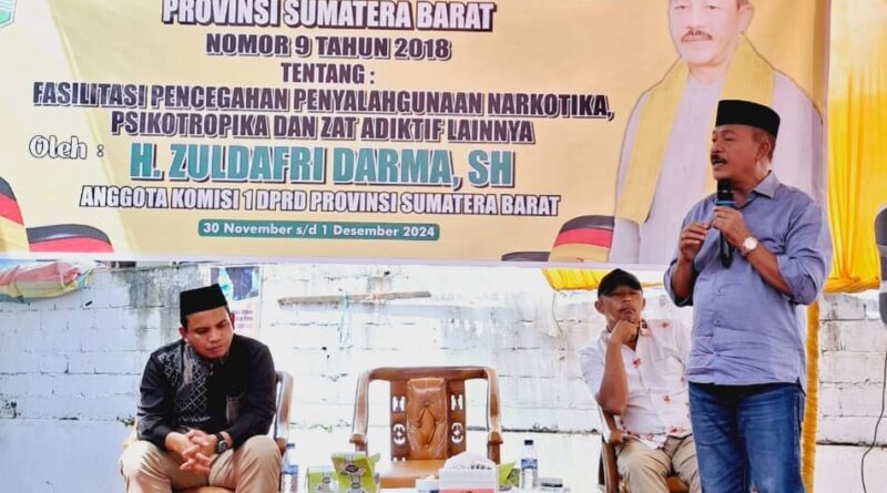 Tanah Datar, MZK News – Anggota Komisi I DPRD Provinsi Sumatera Barat, H. Zuldafri Darma kembali menunjukkan komitmennya dalam memerangi penyalahgunaan narkotika, psikotropika, dan zat adiktif lainnya dengan melaksanakan kegiatan Sosialisasi Peraturan Daerah (Perda) No 9 Tahun 2018 kepada masyarakat Kabupaten Tanah Datar.