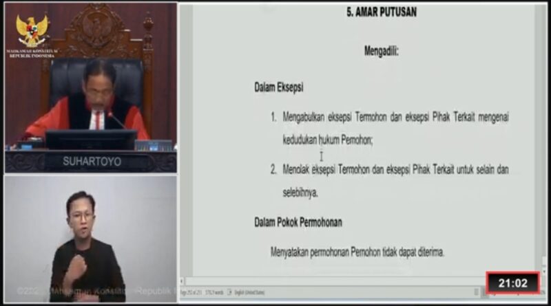 “Dalam pokok permohonan, permohonan pemohon tidak dapat diterima,” tegas Hakim yang juga Ketua MK RI Suhartoyo dalam persidangan.