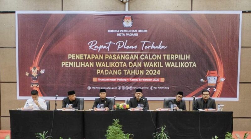 Padang, MZK News – Komisi Pemilihan Umum (KPU) Kota Padang menetapkan Pasangan Fadly Amran Darul Paduko Malano dan Maigus Nasir sebagai Walikota dan Wakil Walikota Terpilih periode 2025-2030 hasil Pemilihan Kepala Daerah (Pilkada) Serentak Nasional 2024.