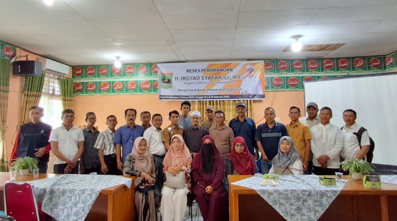 Payakumbuh, MZK News – Untuk menyerap aspirasi masyarakat, Anggota DPRD Provinsi Sumatera Barat, Irsyad Safar, melaksanakan reses masa sidang kedua Tahun 2025 di Aula Kantor Camat Payakumbuh Timur, Kota Payakumbuh pada Selasa (18/2/2025).