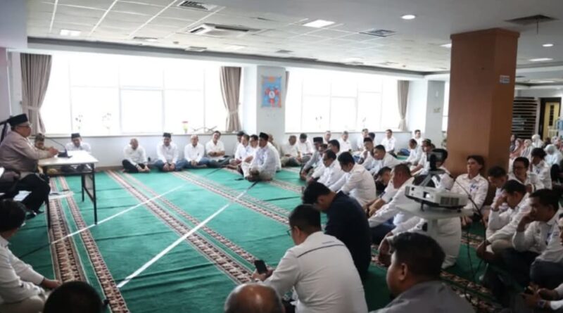 Dalam tausiyahnya, Muhidi menyampaikan pesan-pesan keislaman serta motivasi untuk meningkatkan ibadah dan semangat kerja yang berkah di bulan suci ini.