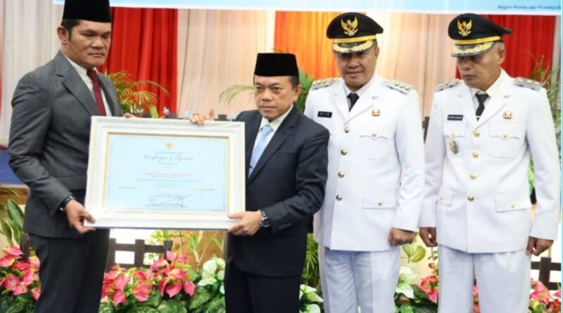 Kemudian, acara dilanjutkan dengan penyerahan Piagam penghargaan kepada Walikota dan Wakil Walikota atas dedikasinya selama menjabat Walikota Sungai Penuh.