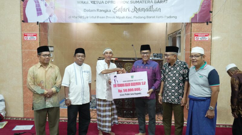 Padang, MZK News – Wakil Ketua DPRD Provinsi Sumbar, Evi Yandri Rajo Budiman kembali menyalurkan bantuan sebesar Rp 50 juta dalam kegiatan Safari Ramadan.
