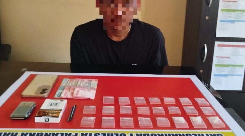 “Berawal dari laporan masyarakat, tim kami segera melakukan penyelidikan dan berhasil mengamankan terduga pelaku di teras Wisma Talentha. Saat dilakukan penggeledahan, ditemukan 16 paket diduga shabu yang disimpan di dalam bungkus rokok di dashboard motor pelaku,” ungkap Agung, Selasa (8/4/2025).