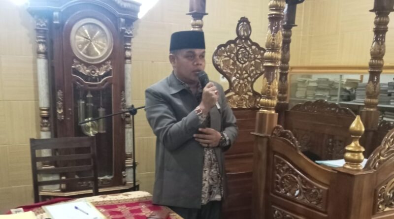 Foto: Fauzi, S.Sos.I., Kasi PD Pontren Kemenag Kota Solok menyampaikan arahan dalam acara Didikan Subuh Gabungan Kec. Lubuk Sikarah (Foto: IST)