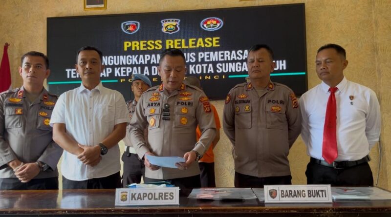 Sungai Penuh, MZK News – Polres Kerinci melakukan press release terkait kasus pemerasan terhadap beberapa kepala desa yang ada di Kota Sungai Penuh dan Kabupaten Kerinci yang dilakukan oknum wartawan, pada Senin (02/06).
