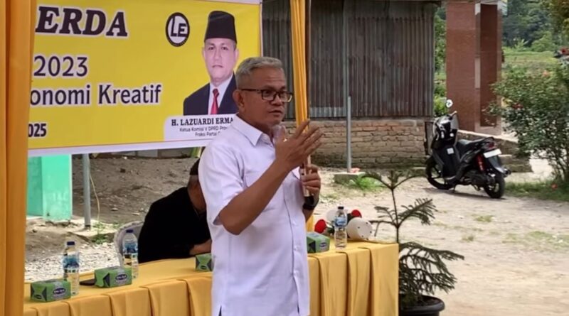 Agam, MZK News – Anggota DPRD Sumbar, Lazuardi Erman, melaksanakan Sosialisasi Peraturan Daerah (Sosperda) di Matur, Kabupaten Agam, Minggu (24/8/2025). Kegiatan ini mengangkat Perda No. 2 Tahun 2023 tentang pengembangan ekonomi kreatif.