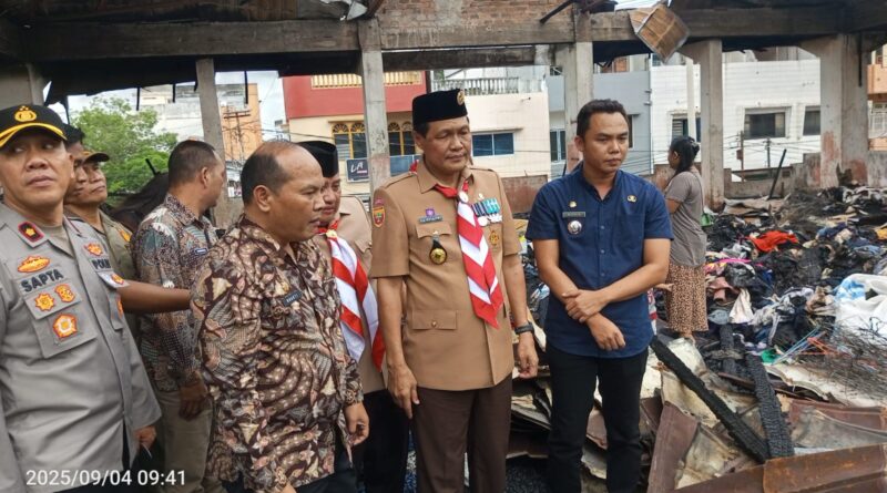 Sementara, Bupati Muara Enim H. Edison didamping Zulfahmi Kajari Muara Enim, Muflih Plt. Damkar, Drs. Bakti M.Si., Firmansyah, Kepala Pasar, setelah upacara Pramuka langsung meninjau lokasi kebakaran dan mengucapkan rasa belasungkawa dan prihatin atas musibah yang terjadi.