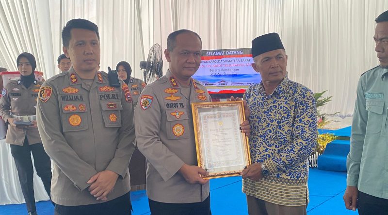 Dalam rangkaian kegiatan, Kapolda menyerahkan bantuan sosial berupa paket sembako kepada masyarakat kurang mampu. Ia juga memberikan penghargaan kepada warga yang telah menghibahkan tanah untuk pembangunan fasilitas Polres Sijunjung.