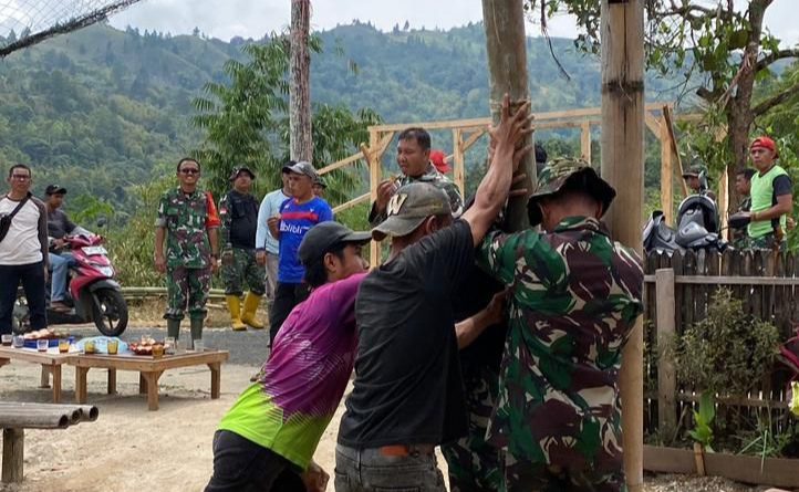 Satgas TMMD Pasang Tiang Net Voli, Wujudkan Fasilitas Olahraga untuk Warga Sungai Jernih