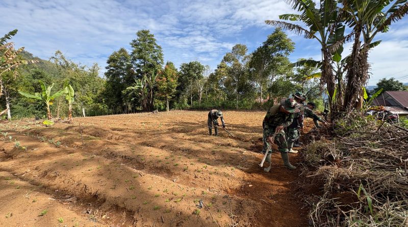 Dengan semangat gotong royong, Sertu Harnodi bersama warga setempat membersihkan rumput dan mempersiapkan lahan agar dapat ditanami berbagai komoditas pangan. Program ini tidak hanya bertujuan untuk memperkuat ketahanan pangan desa, tetapi juga mendorong kemandirian ekonomi masyarakat.