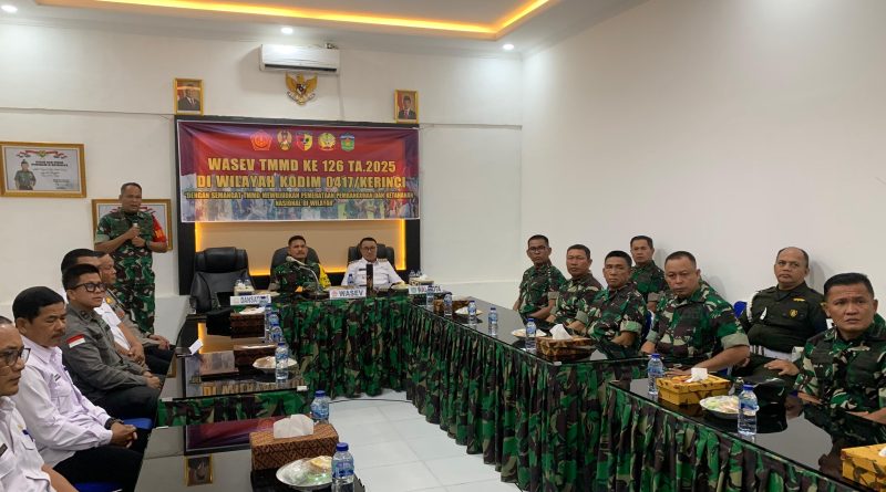 Sungai Penuh, MZK News – Komandan Kodim (Dandim) 0417/Kerinci Letkol Inf. Eko Budianto M.I.P., selaku Komandan Satuan Tugas (Dansatgas) TNI Manunggal Membangun Desa (TMMD) menerima kunjungan kerja (Kunker) Tim Wasev Kolonel Inf. Eben Ezer Lumban Tobing S.A.P., PABAN Sahli Kasad Bidang Politik dan Kapten Arh. Andy Ackbar T. AMD KAUR RENOPSBAK TNI SPABAN V/WILHANRAT STERAD di ruang Data Makodim Kerinci Rabu (29/10).