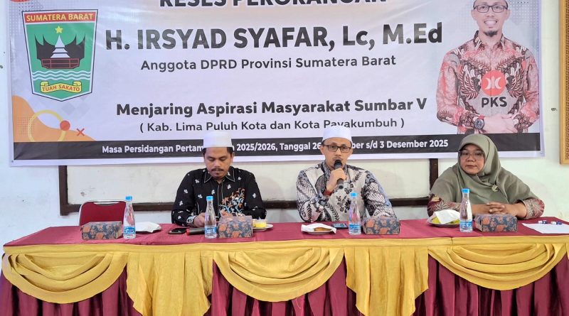 Read MoreLima Puluh Kota, MZK News – Anggota DPRD Provinsi Sumatera Barat, H. Irsyad Syafar, LC, M.Ed, melaksanakan kegiatan reses di SMAN 1