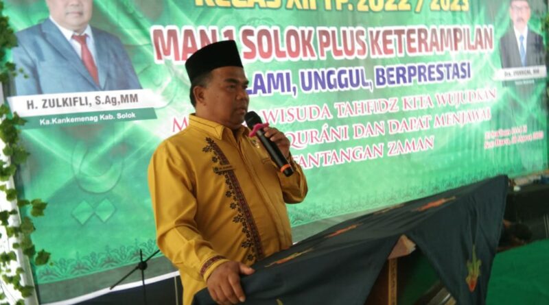 Read MoreFoto: Kepala Kantor Kementerian Agama Kabupaten Solok, H. Zulkifli saat menyampaikan sambutan dalam acara Perpisahan MAN 1 Solok PK (Foto: